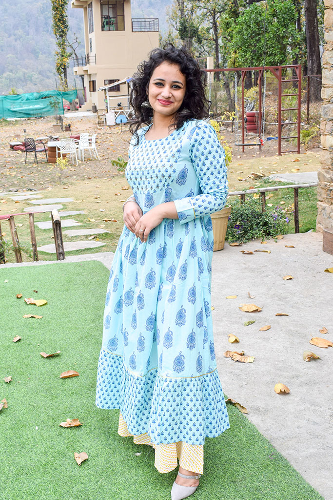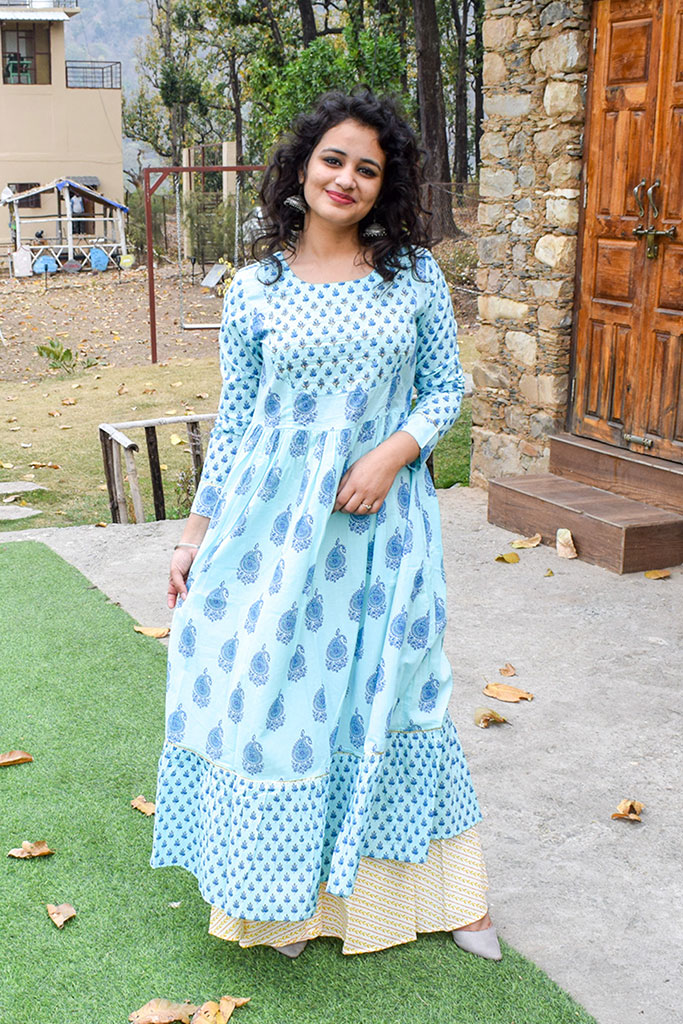 Blue Sequin Work A-Line Kurta